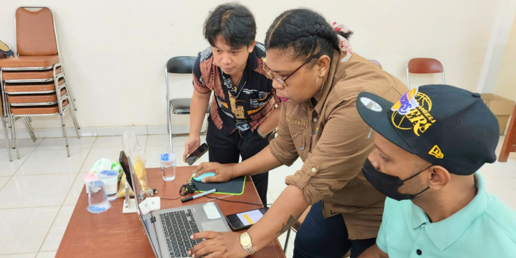 Selain itu, kegiatan pendampingan teknis juga dilakukan bagi tim keuangan dan operasional dari mitra pelaksana, termasuk sosialisasi SOP dana hibah, alat monitoring, dan persiapan akreditasi BPDLH. Pendampingan ini mencakup sosialisasi Standar Operasional Prosedur (SOP) dana hibah, pengenalan alat monitoring, serta persiapan menuju akreditasi dari BPDLH. Kegiatan ini berlangsung di UNMUS dengan partisipasi aktif dari perwakilan Jerat Papua, PHAP, dan UNMUS.